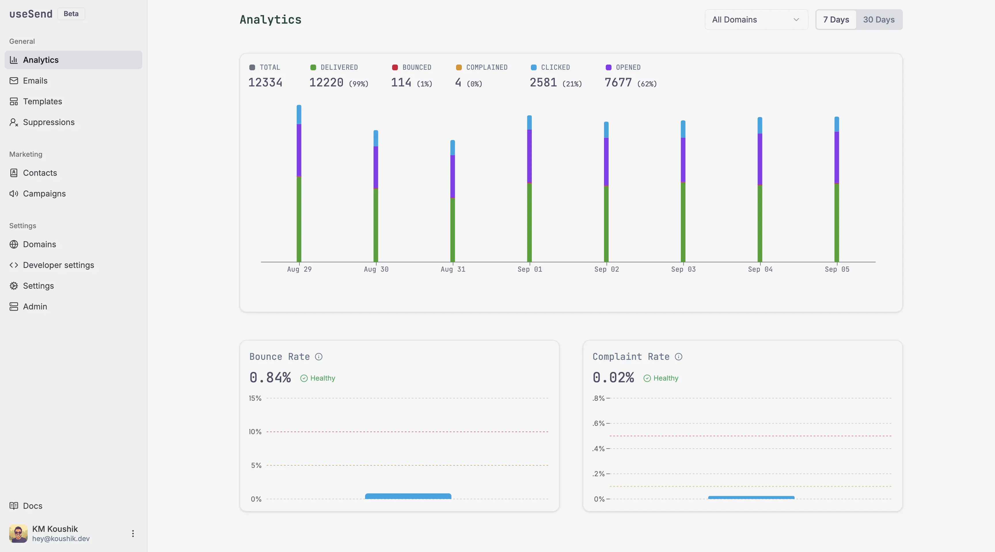 useSend was extremely easy to set up, and I love that it's open source. Koushik has been an absolute awesome person to deal with and helps us with any issues or feedback.